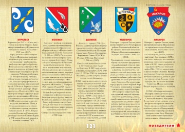Курильск (до 1947 г. – Сяна, яп.) – Ноглики – посёлок городского Долинск – город (с 1946 г.) в Углегорск – город в России, адми- Макаров – город в России, адми-